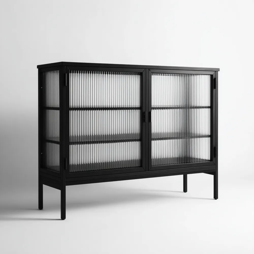Matériau et FinitionConstruit en métal rigide de haute qualité avec une finition noire élégante. Les portes sont en verre canne, ajoutant une touche délicate et moderne.