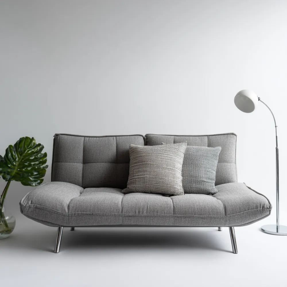 Matériau et FabricationLe canapé est fabriqué en tissu gris clair de haute qualité, offrant à la fois durabilité et confort. Les pieds en métal ajoutent une touche de sophistication et de stabilité.